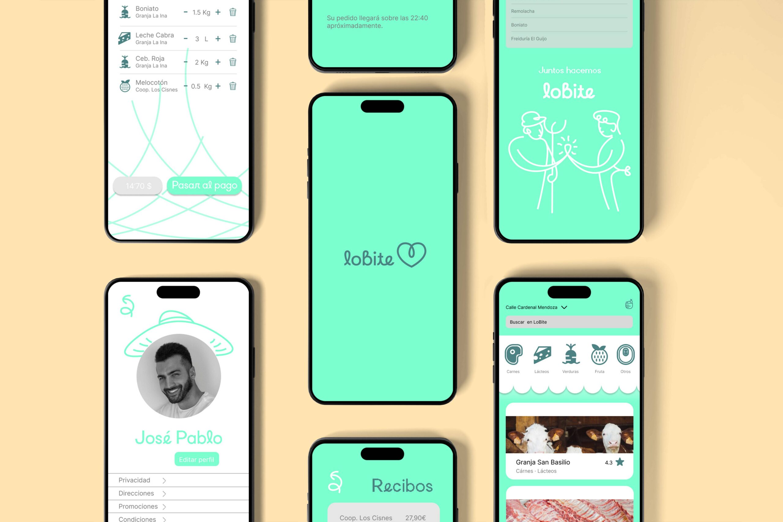 LoBite es un proyecto de diseño de interfaz para una aplicación de comida enfocada en promover el consumo local, conectando a usuarios con restaurantes, pequeños comercios y cooperativas de agricultores de su entorno. La propuesta busca facilitar una relación más directa entre productores, negocios locales y consumidores, reforzando la economía de proximidad.